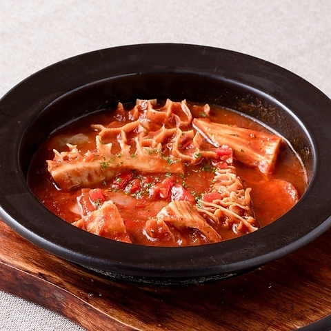 カニをたっぷり使い、キャセロール(土鍋)で焼き上げたアツアツの逸品です。シンプルですがカニの濃厚な旨味を存分に味わえる一品となっております。パンにソースを乗せてお召し上がりください。しっかりとした味わいのスペイン産ワインとご一緒にお楽しみください。