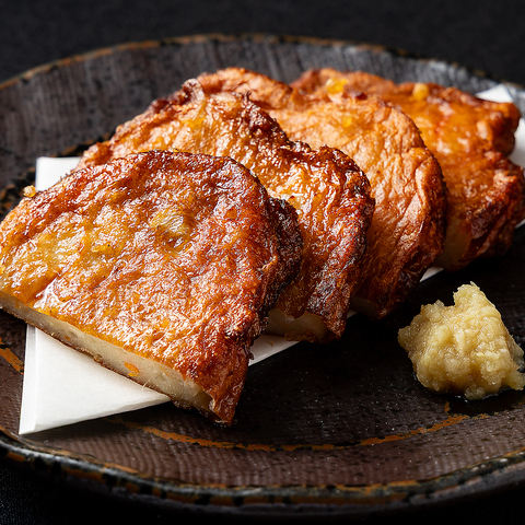 脂の乗った銀鮭のハラスを、皮目はパリッと身はふっくらジューシーに焼き上げました。 とろけるような脂の甘みと香ばしさが口いっぱいに広がる、満足感たっぷりの焼き物です。