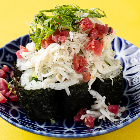 ふっくらしたシラスとカリカリ梅の食感が楽しい、お酒の「あて」にもなる細巻きです。 梅の爽やかな酸味が後味をさっぱりとさせ、お食事の締めにもおつまみにも最適です。