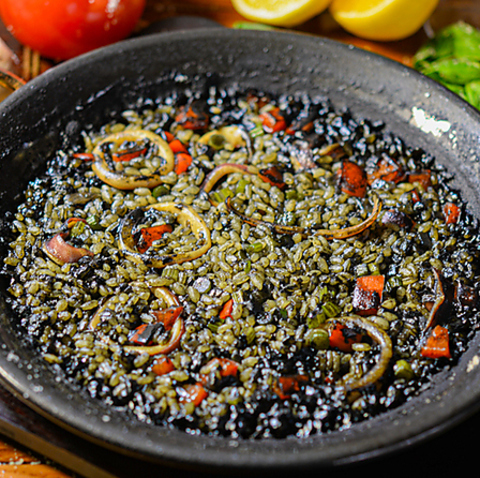 地中海の漁師飯として地元では馴染みの歴史あるパエリア鯛のスープをオリーブオイルでクリーミーに仕上げています