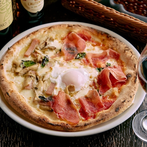 ピッツァ世界選手権優勝職人監修!ピザ生地はイタリア産小麦粉を100%使用し、水の配合や酵母など研究に研究を重ね完成。高温の窯で一気に焼き上げれば、モチっと食感に♪ピザメニューは定番からオリジナルまで約15種!2つの味を楽しめるハーフ&ハーフも人気です。イタリア人も納得のピッツァを気軽に♪