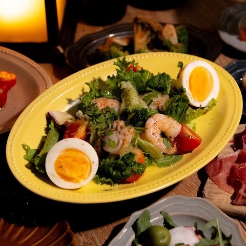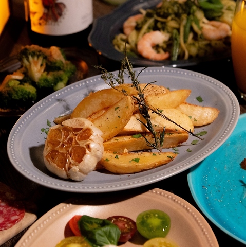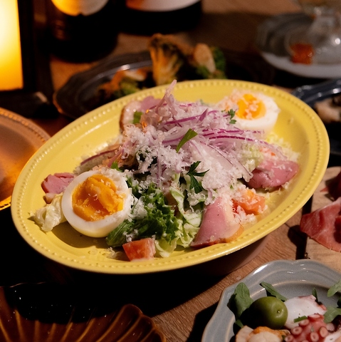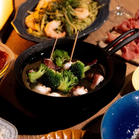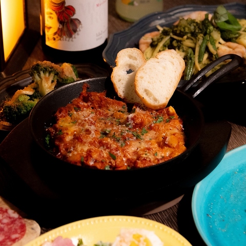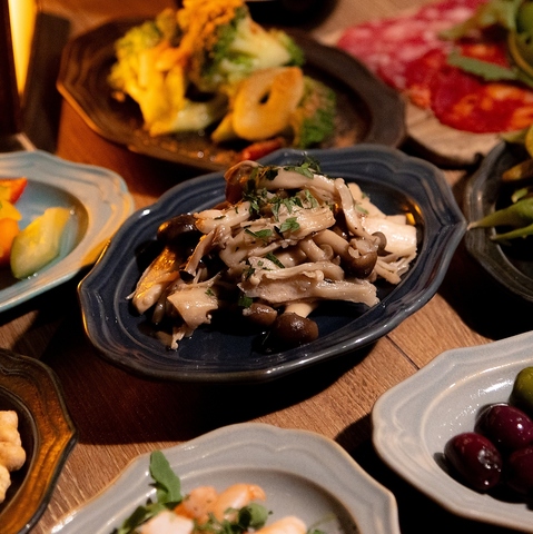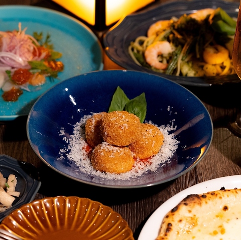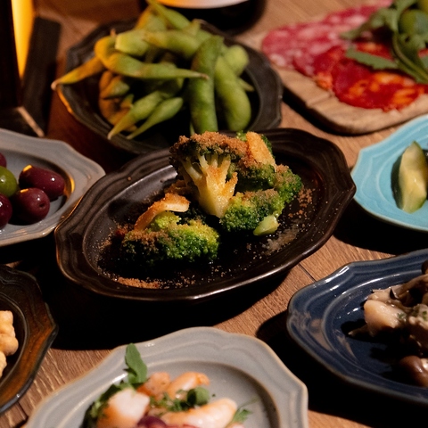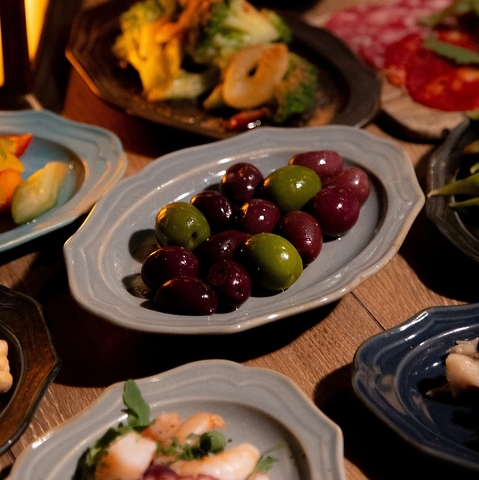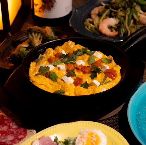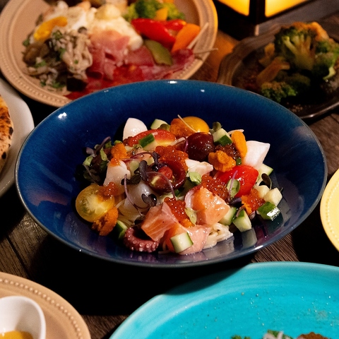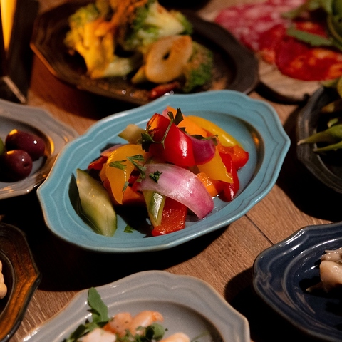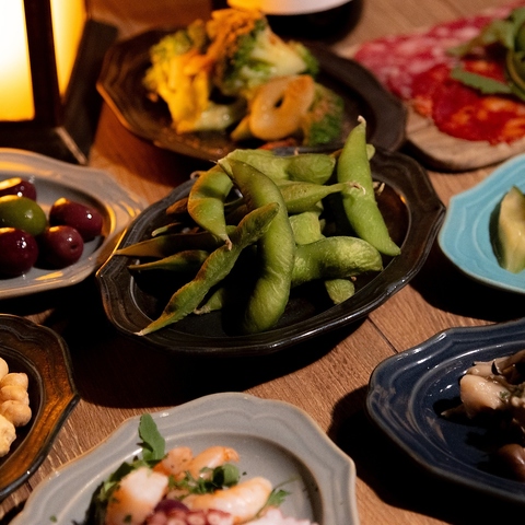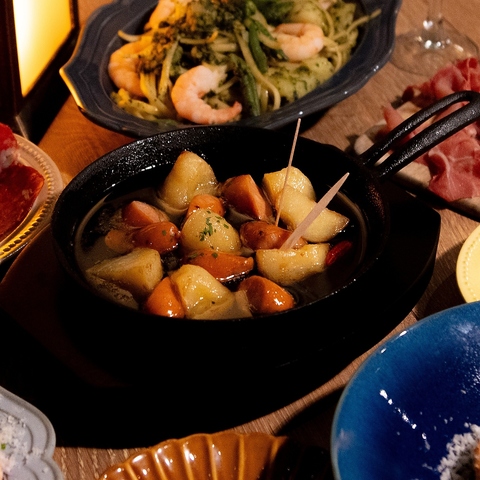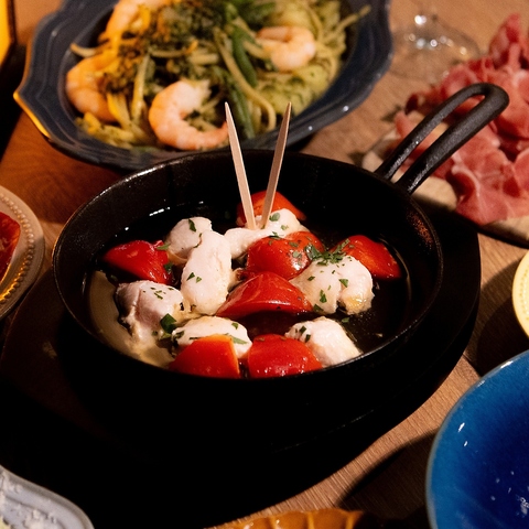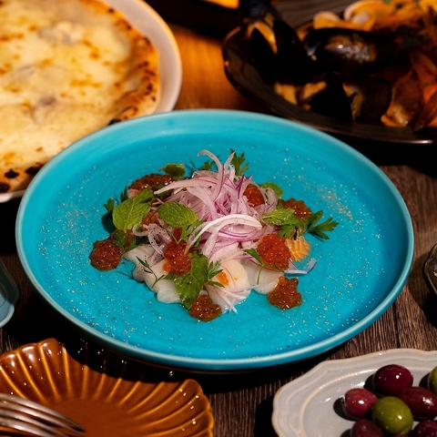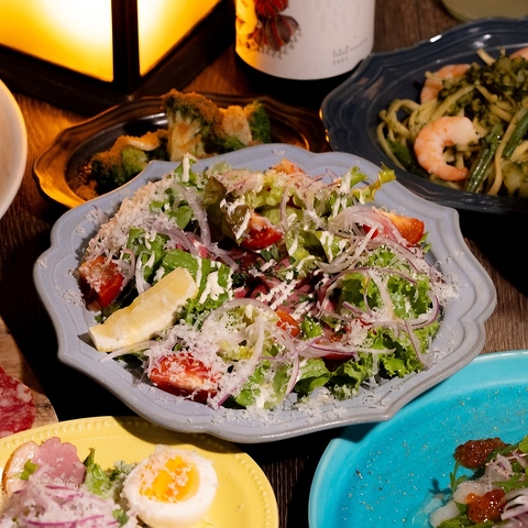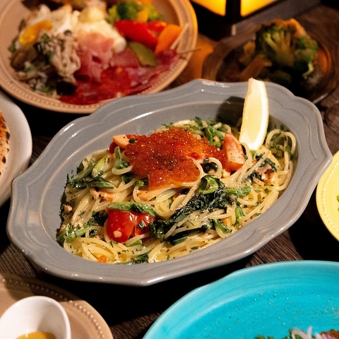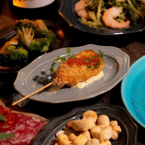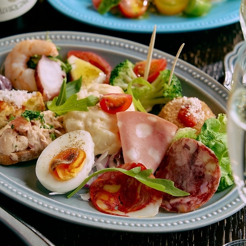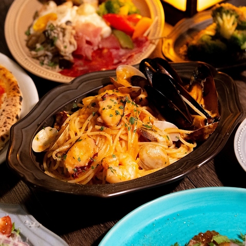 多彩な前菜をたっぷり乗せた「前菜盛合せ」や魚卵たっぷりポテサラやアヒージョも◎パスタは、黒毛和牛とブランド豚「ジャパンX」を絶妙に合わせた自家製ミートソースや、ふわふわチーズのカルボナーラが人気!目でも舌でも楽しめる本格イタリアンを是非♪