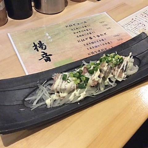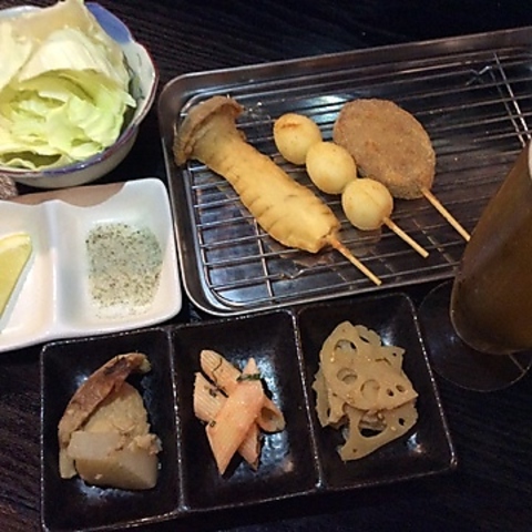 素材のもつ自然の旨みをいかせるよう揚音の串揚げは薄衣仕立て!野菜串も種類豊富で女性でもパクパクいけちゃう美味しさが自慢です。素材のおいしさをそのまま揚げた串揚げは、揚げ油、揚げ加減に徹底的にこだわり一串140円(税込)~とお財布にも優しいのが人気の秘訣です。ぜひ、一度ご賞味ください!!