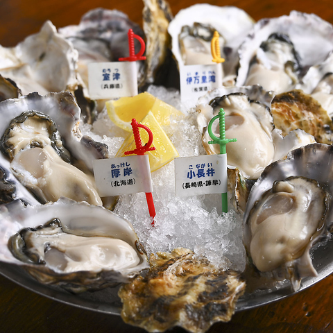 生カキ3種類盛り合わせ食べ比べがオススメ!それ以外にも焼き牡蠣、カキフライ、アヒージョも!