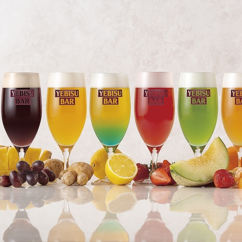 ビールはちょっと…という方の為にもヱビスを楽しめるようにと、ビヤカクテルが用意されています!見ても楽しい!味わって美味しい!カラフルな9種類のビヤカクテル。思わず写真に撮りたくなる♪ヱビスの新しい楽しみ方を提案することにも余念がないのもエビスバーのこだわりです。