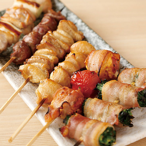 定番の焼き鳥はもちろん、博多ぐるぐる鶏皮、金華さば、野菜まで種類豊富な炉端焼きをご用意
