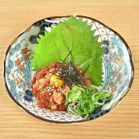 - ※突き出し360円(税込396円)頂戴します。※素材・盛り付けにより、料理イラストと多少イメージが異なる場合もございます。※食物アレルギーをお持ちのお客様はスタッフにお知らせください。※(1)一般的に食肉の生食は食中毒のリスクがございます。※(2)お子様、高齢者の方、その他食中毒に対する抵抗力の弱い方は生食をお控えください。