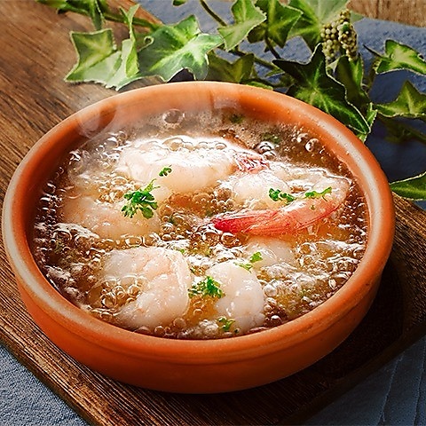 スペインバルといえばやっぱりこのメニュー!定番アヒージョ!具材の旨みが染み出たオイルとバケットをご一緒に♪海老のアヒージョを始め、種類豊富なアヒージョをご用意しております。