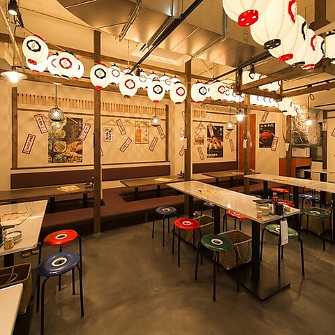 【屋台気分を楽しめる♪】九州博多の風物詩“中洲の屋台村”の雰囲気と名物料理が楽しめる大衆居酒屋!提灯の灯りに包まれながら、仲間ともつ鍋を囲むもよし。特選馬刺しなど一品料理に舌鼓を打つもよし。飲み放題付宴会コースで大人数の打ち上げなどさまざま楽しみ方をご提供!