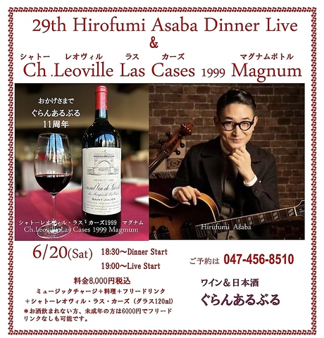 ぐらんあるぶる11周年『浅葉裕文ディナーライブ&シャトーレオヴィル・ラス・カーズ』開けちゃお!