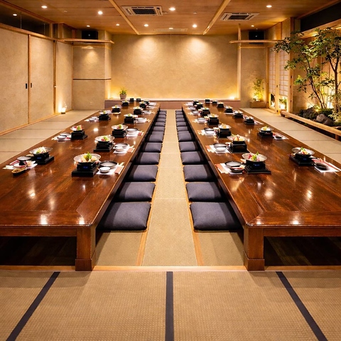 | 座敷 | 8名様×1 | 完全個室は全9タイプ御座います。繋げたり区切ったりする事で様々なニーズにお応えできます。何名様でも完全個室でお寛ぎ下さい。 |
