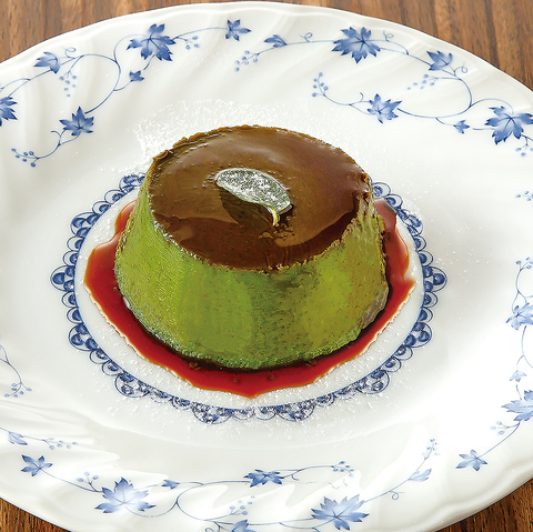 小柳津清一商店の抹茶を使用。ほろ苦さの中にホワイトチョコレートの甘味を感じる滑らかな口どけの生食感デザート。