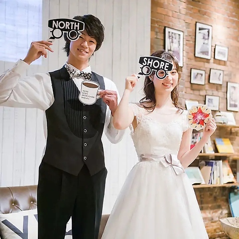 オプションの一つとして、インスタントカメラの貸し出しを行っております。 店内のフォトプロップスと一緒にご利用いただき、記念に残る素敵なお写真をぜひお楽しみください。結婚式の二次会で、お帰りの際のプチギフトとしても大変おすすめです!
