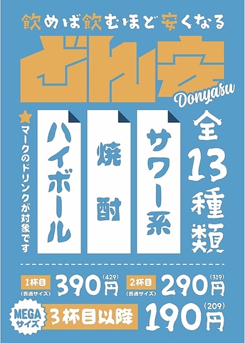 どん安が始まりました~~~飲めば呑むほど安くなる?