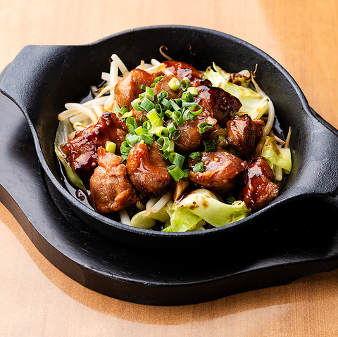 メインには、香ばしい「鉄板焼き」と、当店自慢の「ふわふわつくね」。しっとり柔らかく焼き上げたつくねは、口に入れた瞬間にほどけるような食感と、ジューシーな旨みが広がる逸品です。さらに「牛もつ鍋」は、ぷるぷるのもつと野菜の甘みが溶け合い、心も満たされる味わいで〆までお楽しみいただけます。