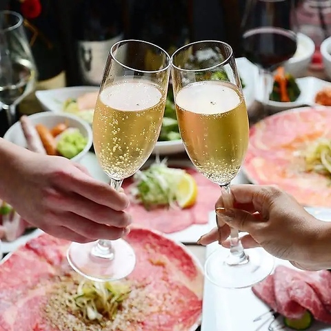 まずは、スパークリングワインで乾杯!和牛ステーキ&2種のレアロゼで大切な記念日や誕生日を彩る