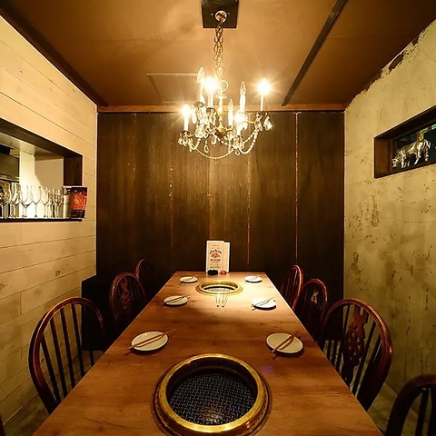 ご褒美ディナーや記念日のお祝いにふさわしい、最大8名様までの上質なテーブル個室をご用意しております。ブランド和牛の美しさを引き立てるシャンデリアや、温かみのあるアンティーク調のインテリアが、非日常の空間を演出。周りを気にせずゆったりとくつろげる店内で、心に残る至福のひとときをお過ごしいただけます。