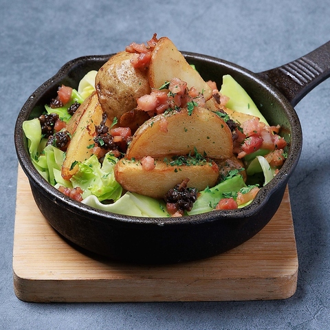 見た目も楽しめる、当店自慢のポテトサラダ★卵を割って…お好みで混ぜてお召し上がりください♪オニオンのシャキシャキの食感、ベーコンの旨み。とろ~り卵とポテサラがよく合います♪1人飲み、ちょい飲みのお供に最適です。