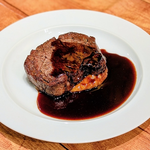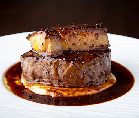 「俺のフレンチ」看板メニュー!肉厚にカットされたフィレステーキの上に、やはり厚めにカッ トしたフォアグラのソテー。そして『ペリグー』と呼ばれるト リュフをふんだんに使った芳醇なソース。 付け合わせには、滑らかに仕上げたマッシュポテトを添えます。※現在は数量限定での販売となります。