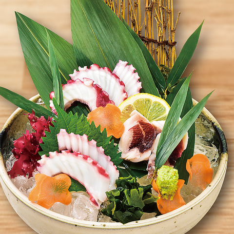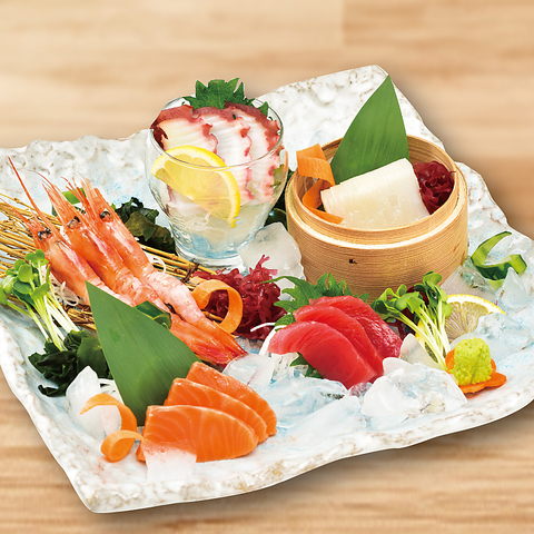 もも、むね、ハツ、レバー、砂肝の盛合せタレと塩からお好みの味をお選び頂けます。