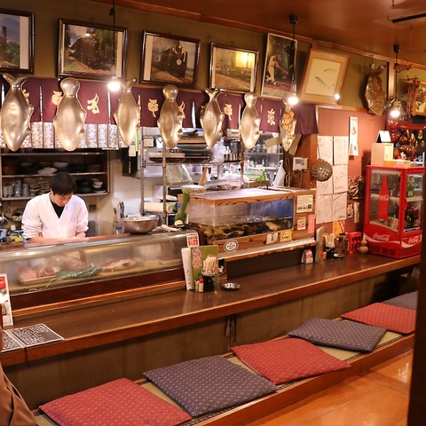 どこか懐かしい雰囲気の居酒屋。店内の造りや、飾ってある物、店主、従業員、全てが一体化して、お客様に居心地の良い空間をご提供します。