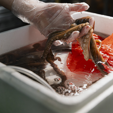 福岡では超希少!注文を受けてから水槽のタコを捌く「サンナッチ(踊り食い)」は鮮度抜群で甘みが違います♪タウリン豊富で美容にも◎!仕入れ状況による数量限定のためご予約必須です!
