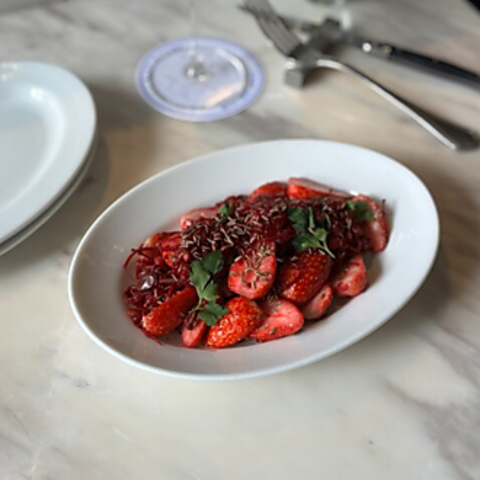 燻製した鴨とフォアグラのポワレ ビーツのリゾット
