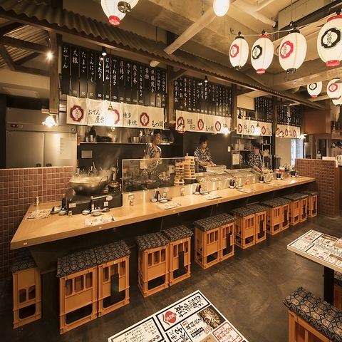 【人情味と活気あふれるおもてなし♪】丁寧かつ元気いっぱいの接客でお出迎え。本場博多の屋台の雰囲気と迫力ある調理場を感じながら、お料理やお酒をゆっくりお楽しみください。賑やかな店内は、会社宴会はもちろん、女子会や誕生日会など、さまざまなシーンで気軽に楽しめます♪
