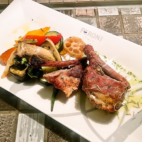 スペアリブをローズマリーと香草で香りをつけじっくり焼き上げた一品※じっくりオーブンする為、お時間20~30分前後いただきますご了承ください。宴会、結婚式二次会、歓送迎会、誕生日、記念日、女子会に◎ 宇都宮 飲み放題 宴会 コース 忘年会 新年会