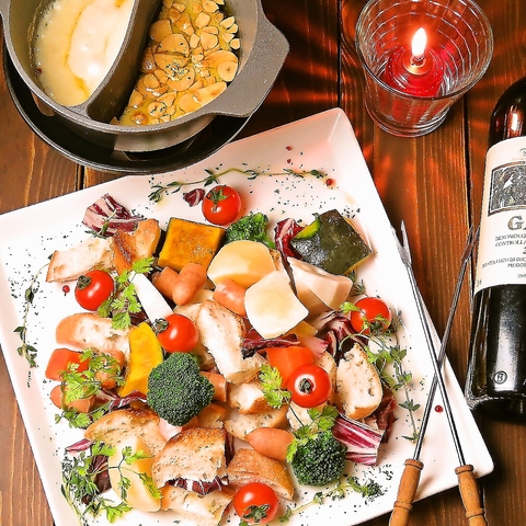 女性に大人気!!チーズの香りが食欲をそそります☆新鮮野菜やパンをとろーりチーズソースに絡めて♪。ダブルで楽しめます。