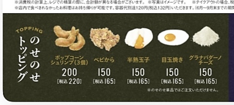 - のせのせトッピング/サイドメニュー