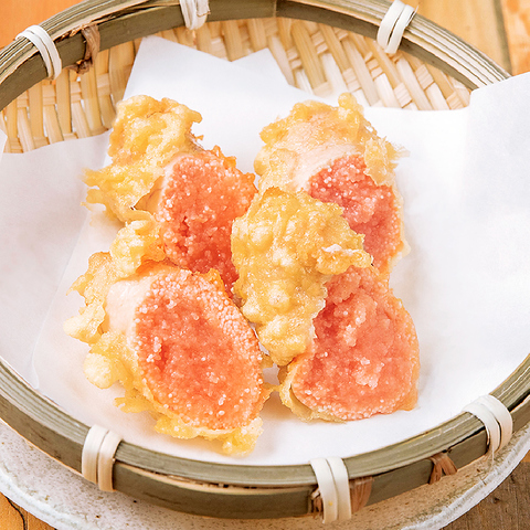 ピリッと旨辛な博多明太子を、ふんわり軽い衣で包み、サクッと香ばしく揚げました。噛めば明太子のコクと辛みがじゅわっと広がり、揚げたての香ばしさが食欲をそそります。お酒のつまみにも、ご飯のお供にもぴったりの逸品です。 税込 715円(税込)