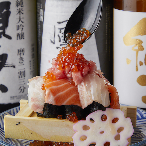 当店の海鮮は旬の素材を厳選しております。そのこだわりの海鮮をふんだんに使用した刺身/こぼれ寿司/レアサーモンフライが自慢です!盛り付けまで丁寧に心を込めて仕上げます。ぜひ日本酒や焼酎と一緒にご堪能ください。当日のオススメはお気軽にスタッフにお尋ねください!