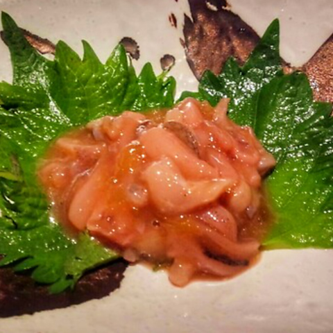 生でも食して頂ける新鮮な牡蠣を、サラッと焼き上げました。こぶし大はあろうかというボリュームたっぷりな牡蠣を、ポン酢とネギにさっぱりもみじおろしで召し上がれ。