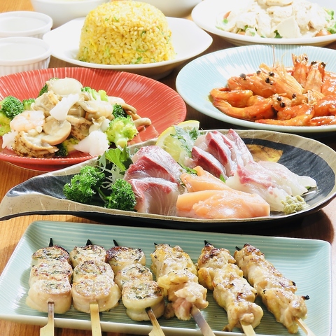 広島唯一の本格中華料理と串焼のコラボレーション!日本有数の一流ホテルで長年料理長として腕を振った経験を活かした極上料理を堪能できる上に、二十年串一筋の串職人がラム肉やパリ皮付鶏もも串等のかわり種創作焼串を特上の焼きかげんにて提供致します。食欲、お酒も一段と進むお料理をお楽しみ下さい!!