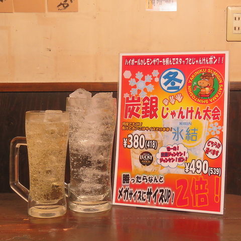大好評【炭銀ジャンケン大会】を開催!勝ったらなんとメガサイズに!!レモンサワーも追加!!