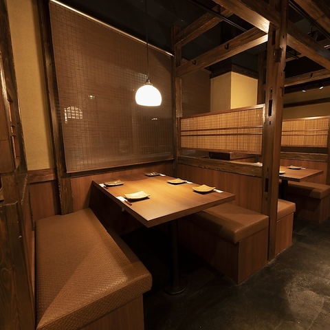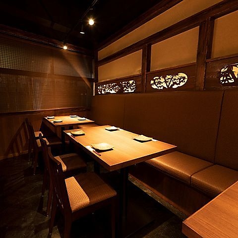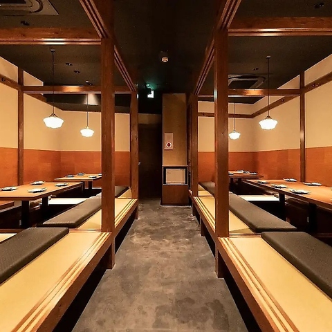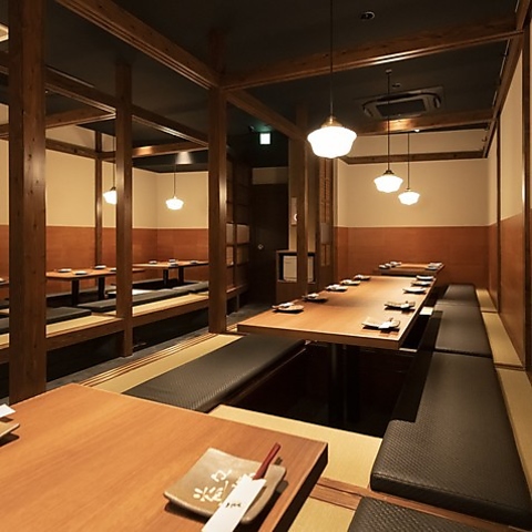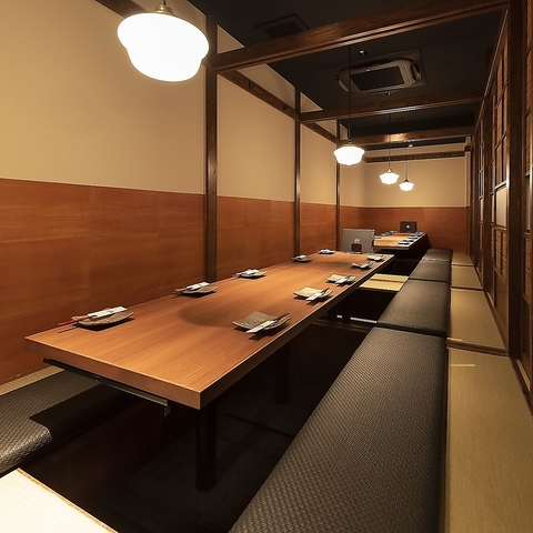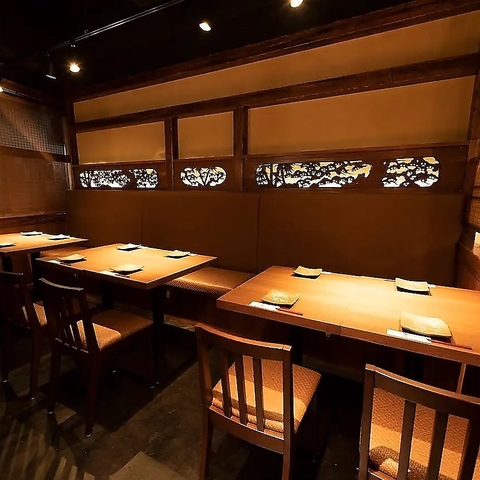 和情緒が溢れる空間は、気軽なサクッとした飲み会から接待や宴会など、様々な場面や用途に最適です。温もりのある照明と木のテーブル席で、ゆったりとした時間をお過ごしください。皆さまのご来店を心よりお待ちしております。