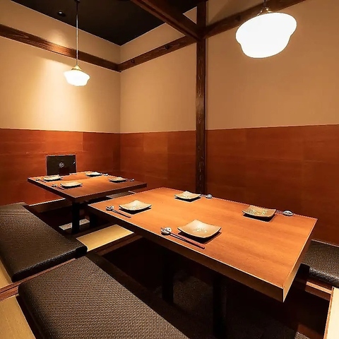 【ゆったり寛げる掘りごたつ席完備】足を下ろしてゆったり座れる掘りごたつ席をご用意。お買い物帰りの食事やお仕事終わりの飲み会にぴったりな、ほっとできる落ち着いた空間です。豪華食材を使った飲み放題付きのコースも充実しているため、接待や誕生日・記念日にもおすすめです。