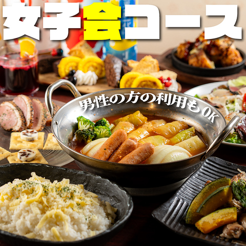 【女子会おすすめ!男性も利用OK】鶏料理や洋風メニューを揃えた女子会コース!乾杯ドリンクにフルーツサングリアもお楽しみいただけます◎サントリー生ビール付き2時間飲み放題つき。前日までキャンセル料無料(条件あり)で幹事様安心!(L.O.30分前) ※料理のみ(1ドリンクつき)は3500円