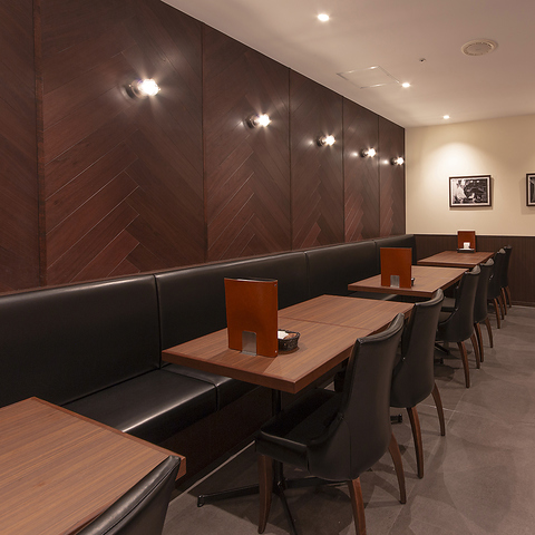 レザー生地の座り心地の良いソファー席がございます。どこか懐かしさを感じるクラシカルな空間で、絶品のハンバーグメニューをお楽しみ下さい。