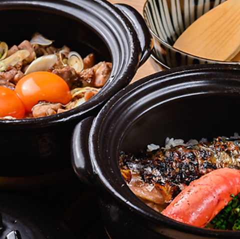 「地鶏の炭火焼と玉子の土鍋親子ご飯」と「鯖と明太子の博多土鍋ご飯」の2種の土鍋ご飯おすすめです!