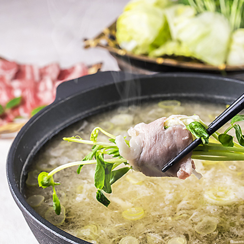 創業以来の人気メニュー。国産のブランド豚を使用した、さっぱりおろし鍋。鰹と昆布が香る特製だしスープで上質な豚肉や新鮮野菜をしゃぶしゃぶ。旨みが溶け込んだスープで〆の一杯までご堪能ください。