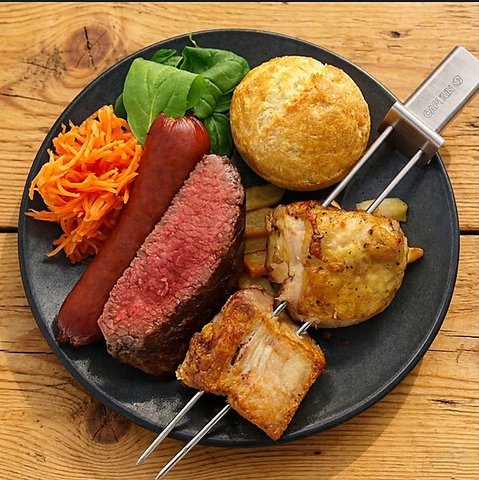 シュラスコの醍醐味は、目の前で巨大な肉の塊を切り分けるライブパフォーマンスにあります。お客様のテーブルを回り最高潮の焼き上がりをご提供。お好きな部位を心ゆくまでお楽しみいただける食べ放題をご用意しています。我々のブルワリーRIOBREWING&CO.のクラフトビールとのペアリングはまさに至福のひとときを演出します