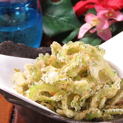 特製ダレに漬け込んだゴーヤを薄切りにしてカリッと揚げた、苦味を活かしたヘルシーなチップス。ゴーヤの爽やかな苦味と塩気のバランスがクセになり、ビールのお供に最適です。パリパリとした食感も楽しく、ゴーヤが苦手な方にもおすすめです。