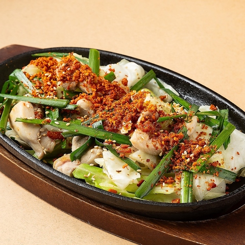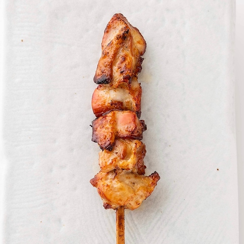 鶏皮と餃子の餡がしっかりマッチ!特製の甘めのタレを絡めました。