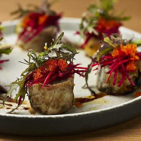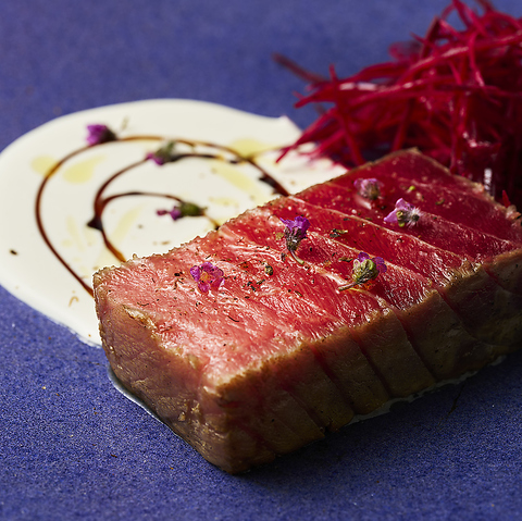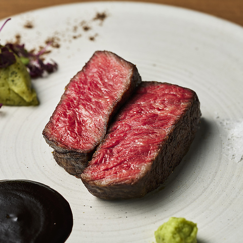 溢れる肉汁と肉の味わいをしっかり感じる事の出来る旨味とのバランスが最高な名物おおいた和牛の赤降りスペシャル オレイン55%。食材探しは必ず生産地へと赴き、生産者のこだわりと想いがゲスト皆様に伝わるよう調理法にもこだわっています。皆様の期待にお応えできる自慢のおおいた和牛をご堪能あれ。