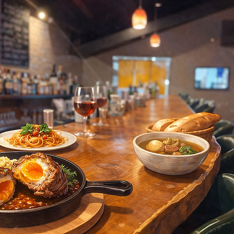 【やわらかな照明に囲まれた、癒し空間でくつろぎのひと時】店内は、木の風合いを生かした温かい空間。9席あるカウンター席は、おひとり様でも過ごしやすいと評判です。テーブル席では、宴会や女子会におすすめ。冬はストーブで温かく迎えてくれるサービスも。