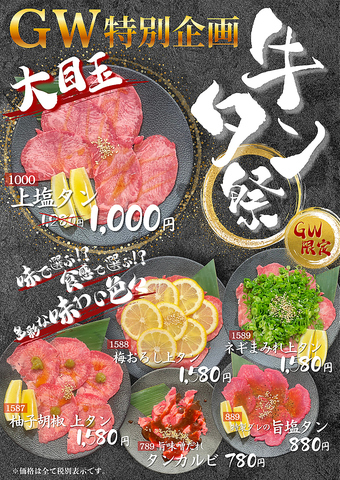 4月29日―5月10日 GW限定大人気イベント!タン祭り開催!大人気タン6種類を超お得価格でご提供!