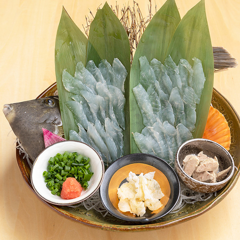 味わい深く上品な「カワハギ」と、大分特産のかぼすを混ぜた飼料を与え、さっぱりと洗練された味わいの「かぼすヒラメ」食べ比べ。〈アラを使ったお吸い物付き!〉※写真はイメージで実際のお料理とは異なります。また、季節によっては肝がお出しできない場合、カワハギの入荷がない日はウマヅラハギに変更する場合がございます。2178円(税込)
