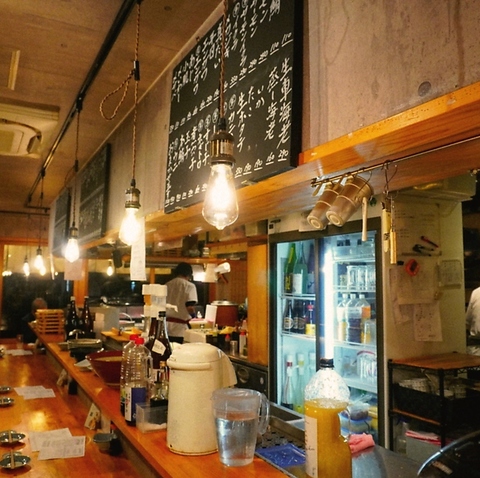 | テーブル | 6名様×1 | 【1F テーブル6名席】内装はシンプルで、カジュアルながらも居心地の良い店内。スッキリとした内装を意識し、コンクリート打ちっぱなしの壁に、木目の美しい什器を配し、裸電球などでレトロな趣もプラス。いわゆる大衆酒場とは一線を画した、オシャレで心地良い空間となっています。 |